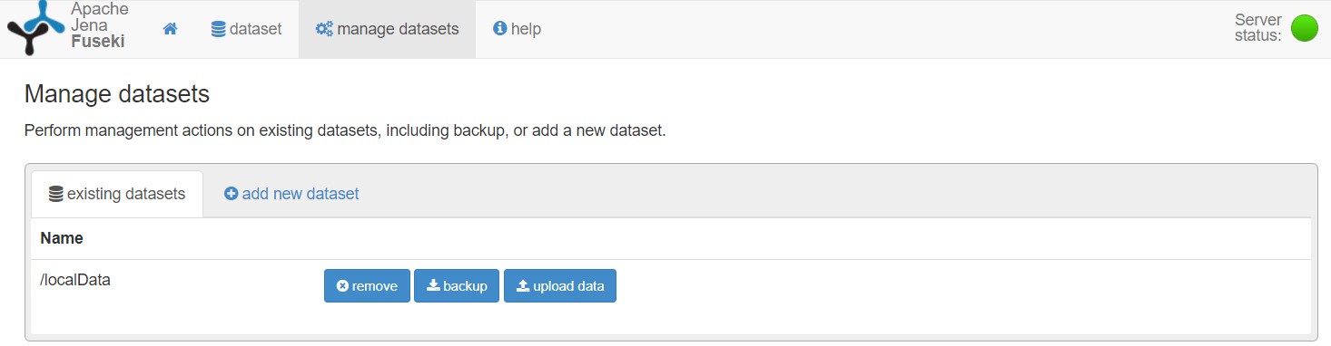 If you go to http://localhost:3030, you should see a localData dataset has been created.