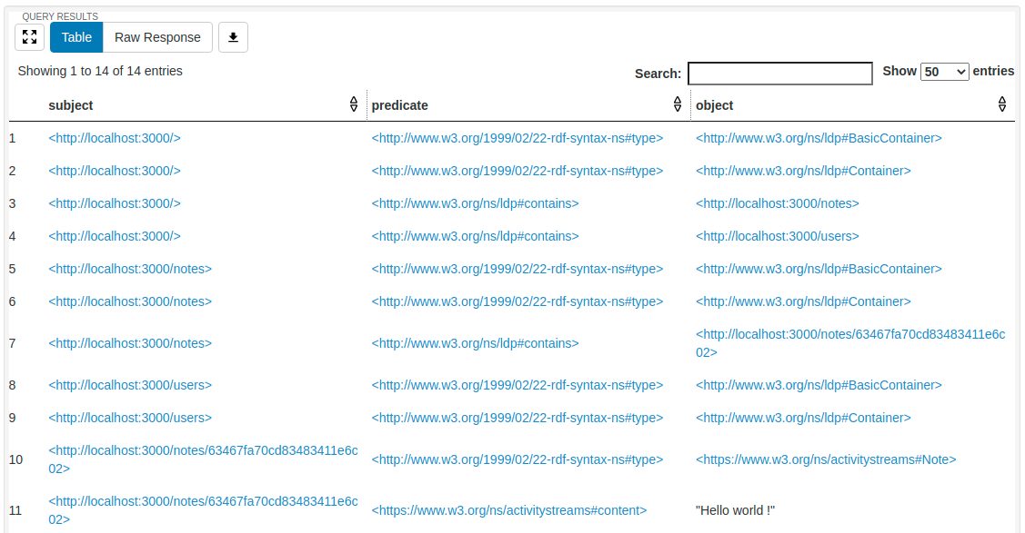 To test if our LDP server is really working, you should check if the data has been added to our Jena Fuseki instance.